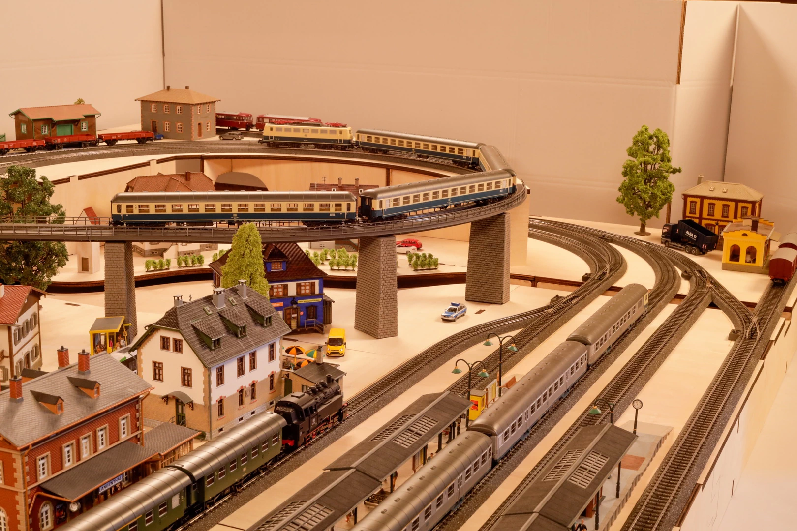 Thema | 2-gleisige Hauptbahn m. kleinem Bw + Nebenbahn-Endbahnhof (Pendelzug) |